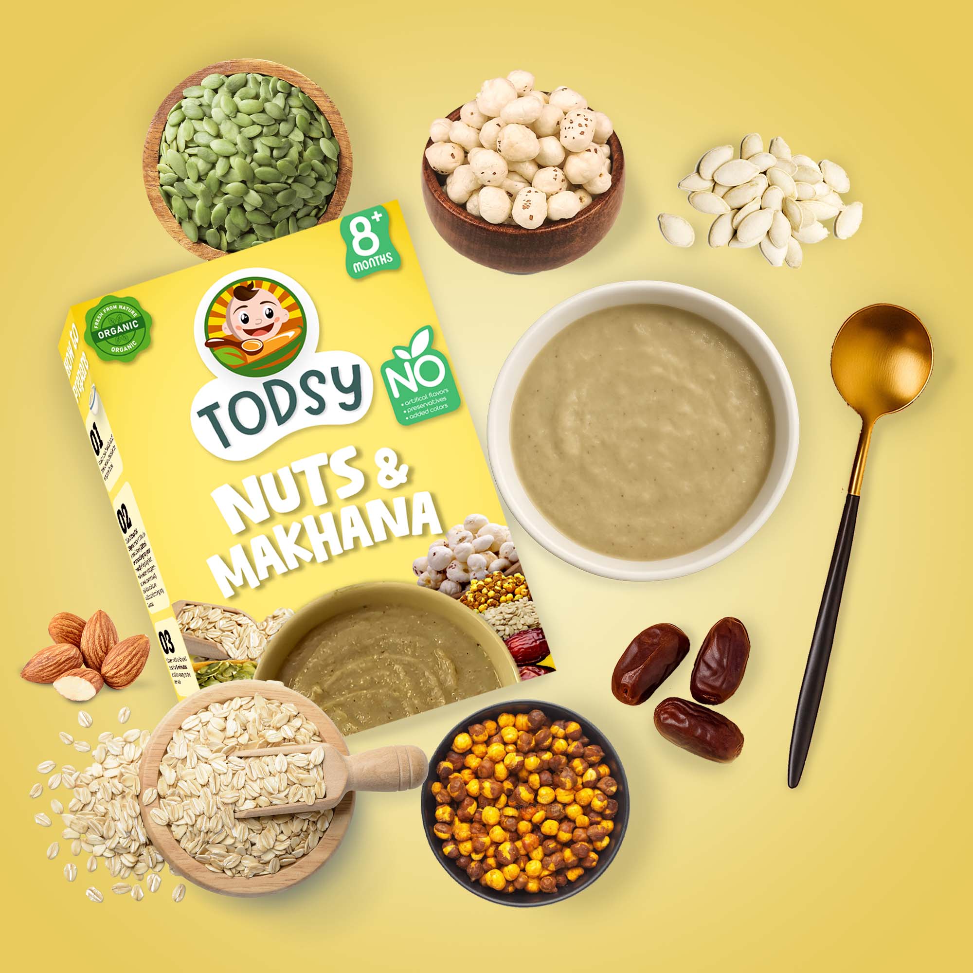 A wholesome mix of Foxnuts (Makhana), Oats, Premium Nuts & Dates, creating a rich and creamy meal packed with nutrients.